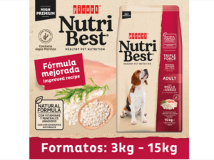 Nutribest Adult Chicken and Rice es un alimento High Premium formulado por nuestros expertos en nutrición y veterinarios para que tu perro crezca sano y vital y disfrute de una salud óptima. Contiene Algas Marinas del Atlántico Norte para una piel y un pelo sanos y cuidados.